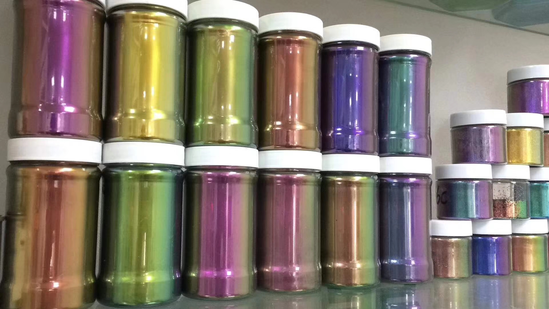 变色龙系列:本系列产品使用高透明度的新型片状合成云母、玻璃片等为基材,通过多层叠加包覆技术,精准控制不同金属氧化物的厚度,而形成的新型的效果颜料;可随着观察角度和光照角度的变化而呈现出不同的颜色变化,有着梦幻般色彩和高镜面效果。我司产品色泽丰富,规格、种类齐全。